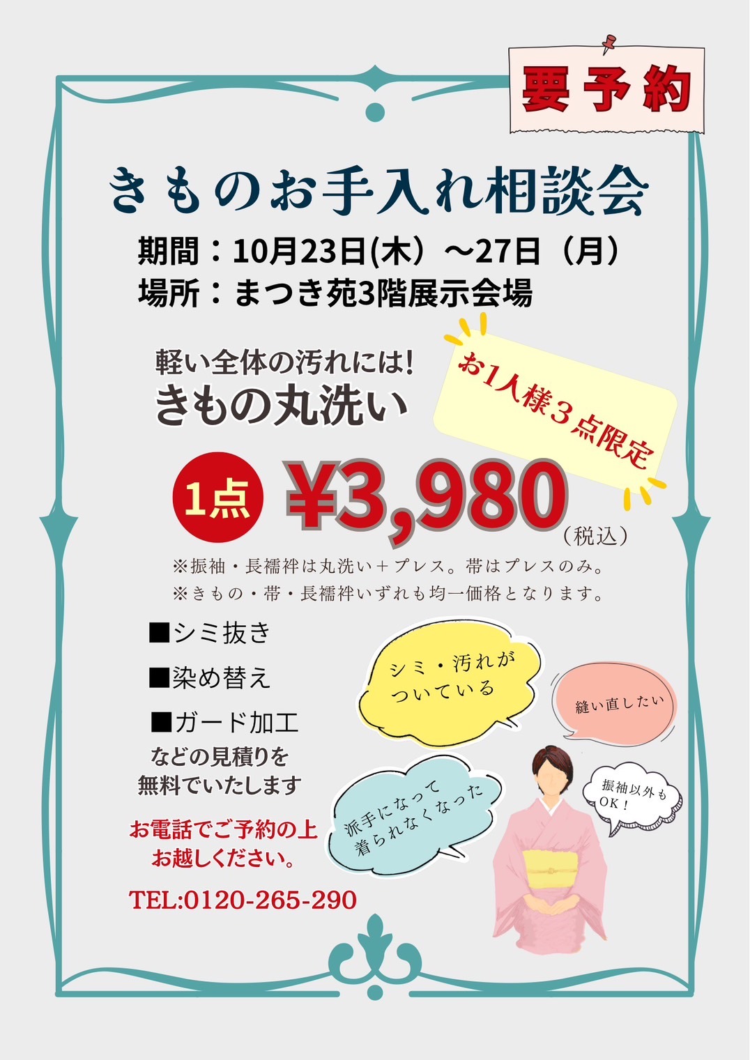 【着物デビューしませんか?】TPOとお手入れの疑問を解消!天文館まつき苑で学ぶ「着物のお悩み相談会」